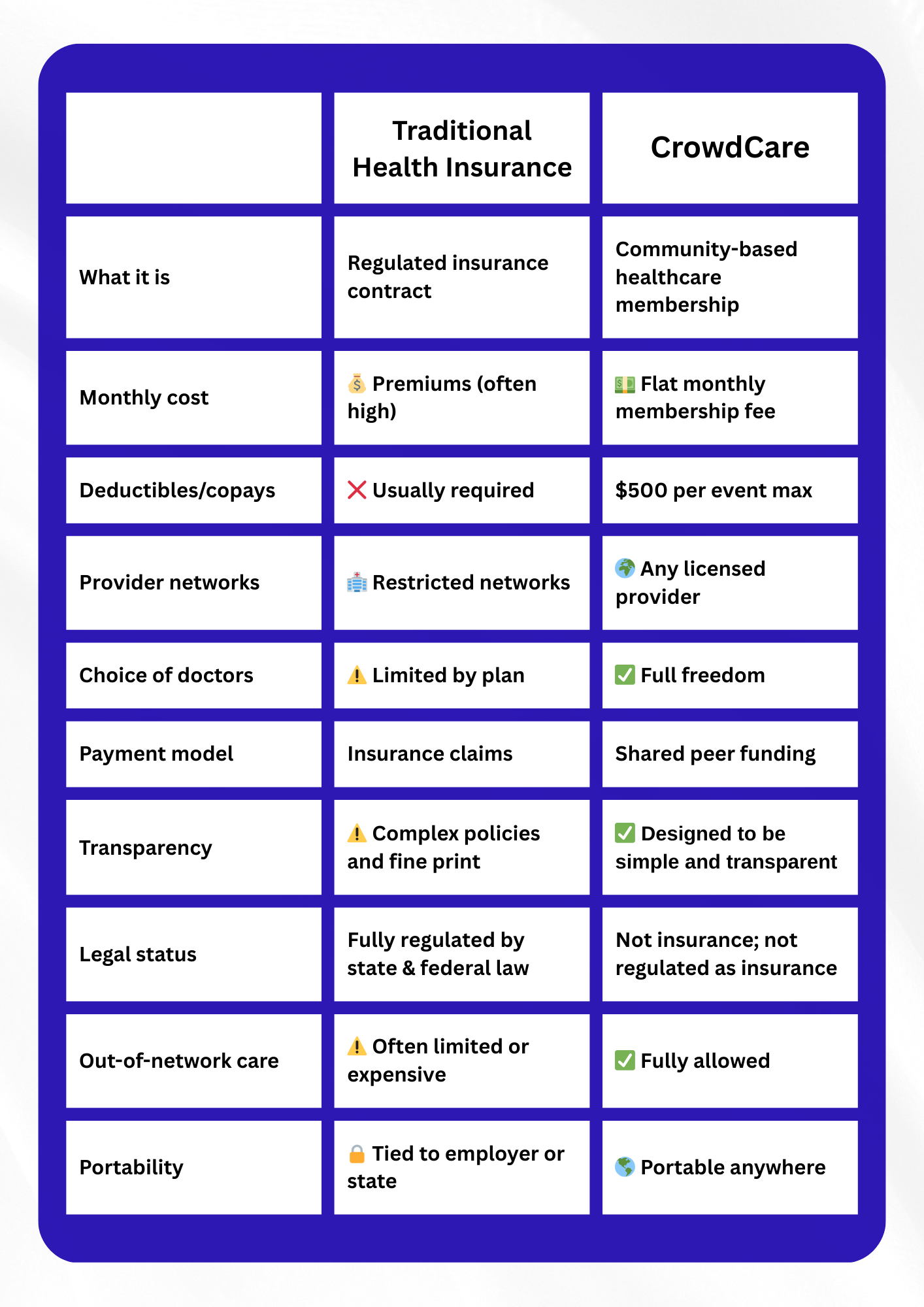 CrowdCare is not insurance—it is a membership-based model built on fairness, transparency, and community support.